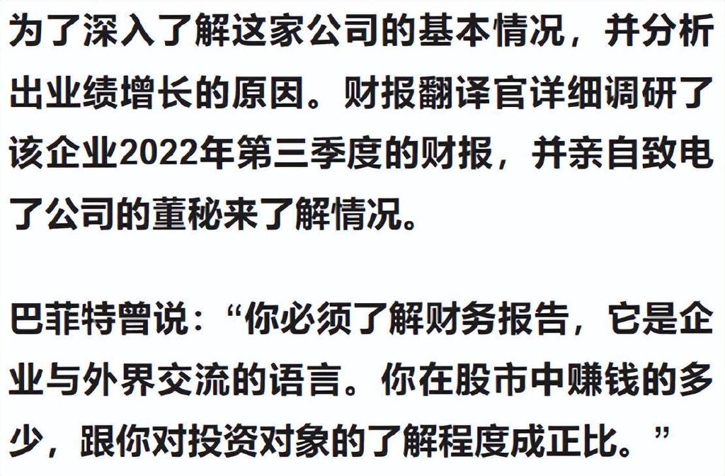 以下内容和财务数据均源自该公司2022年第三季度报,并没有任何个人观点。