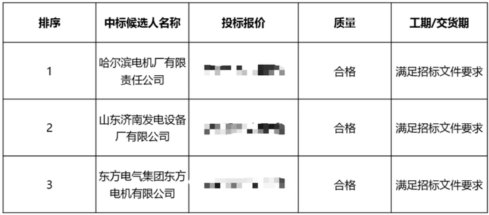 002发电机中标候选人第一名为哈尔滨电机厂有限责任公司;