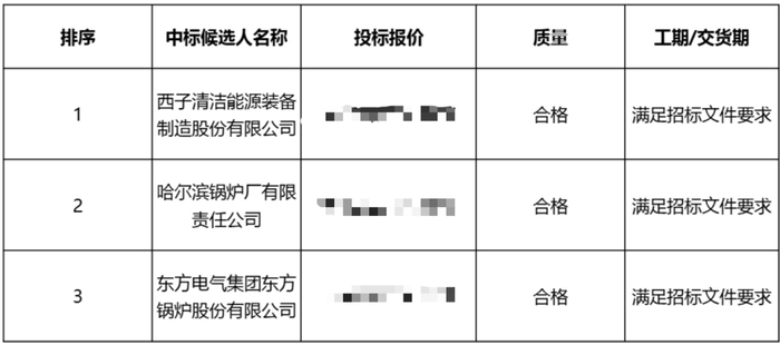 003蒸汽发生器中标候选人第一名为西子清洁能源装备制造股份有限公司。